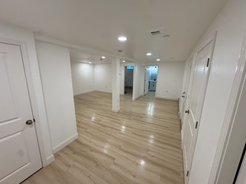 This stunning basement transformation in Portland, Maine redefines modern comfort and functionality. With a total investment of $76,000, the project introduced a sprinkler system, air exchange system, full bathroom, and a dedicated utility room — turning an unfinished basement into a safe, energy-efficient, and highly livable extension of the home.