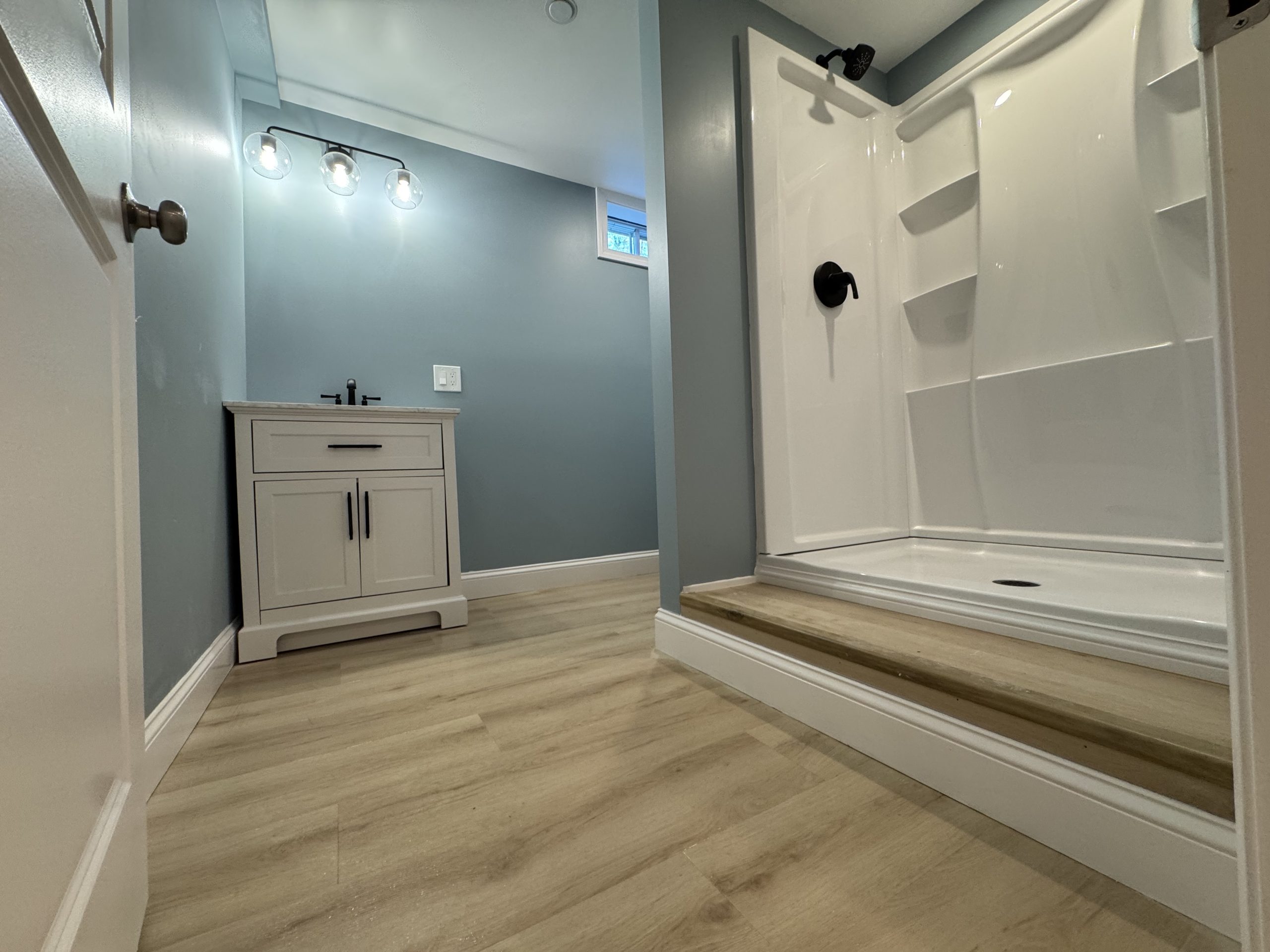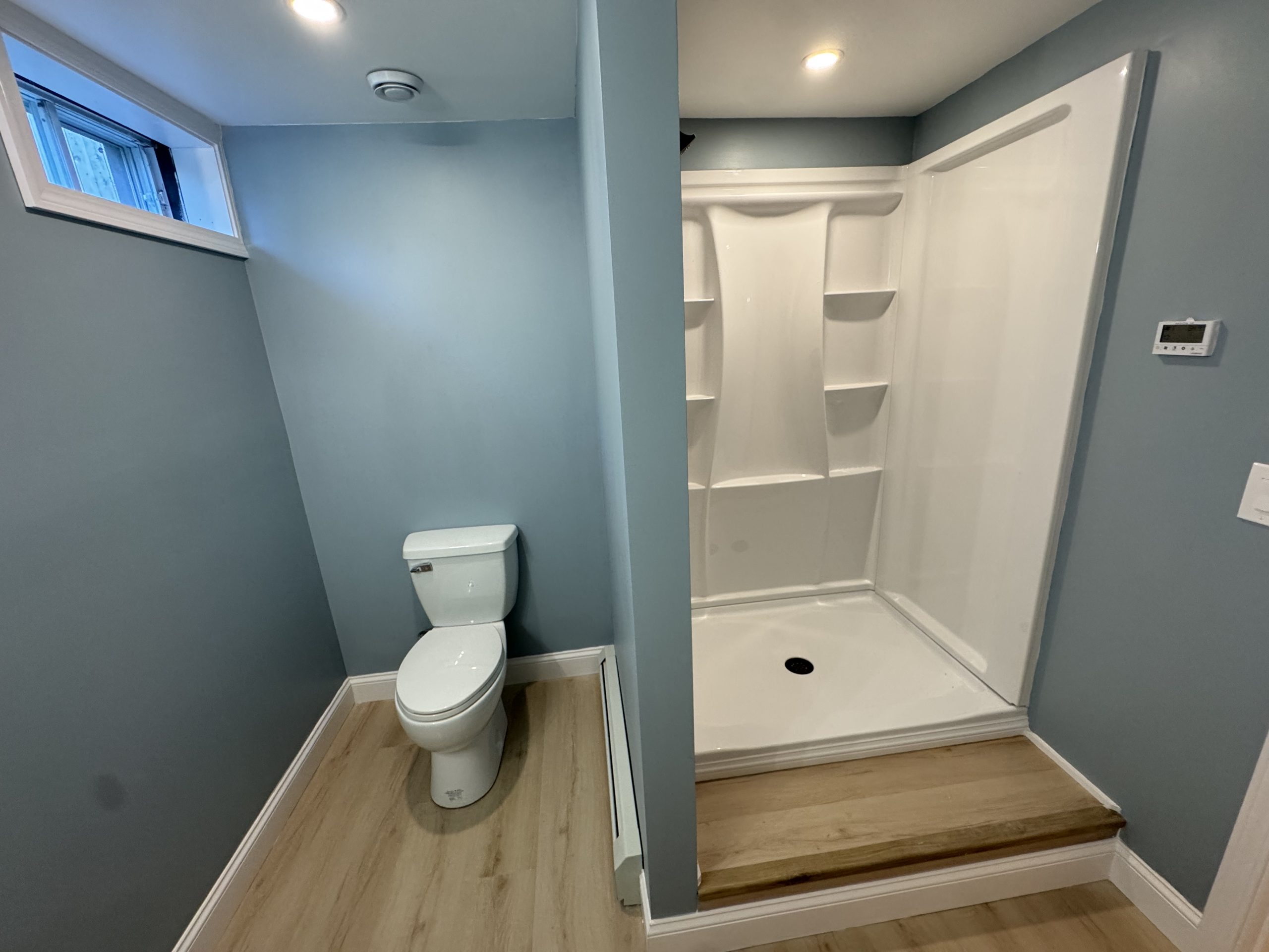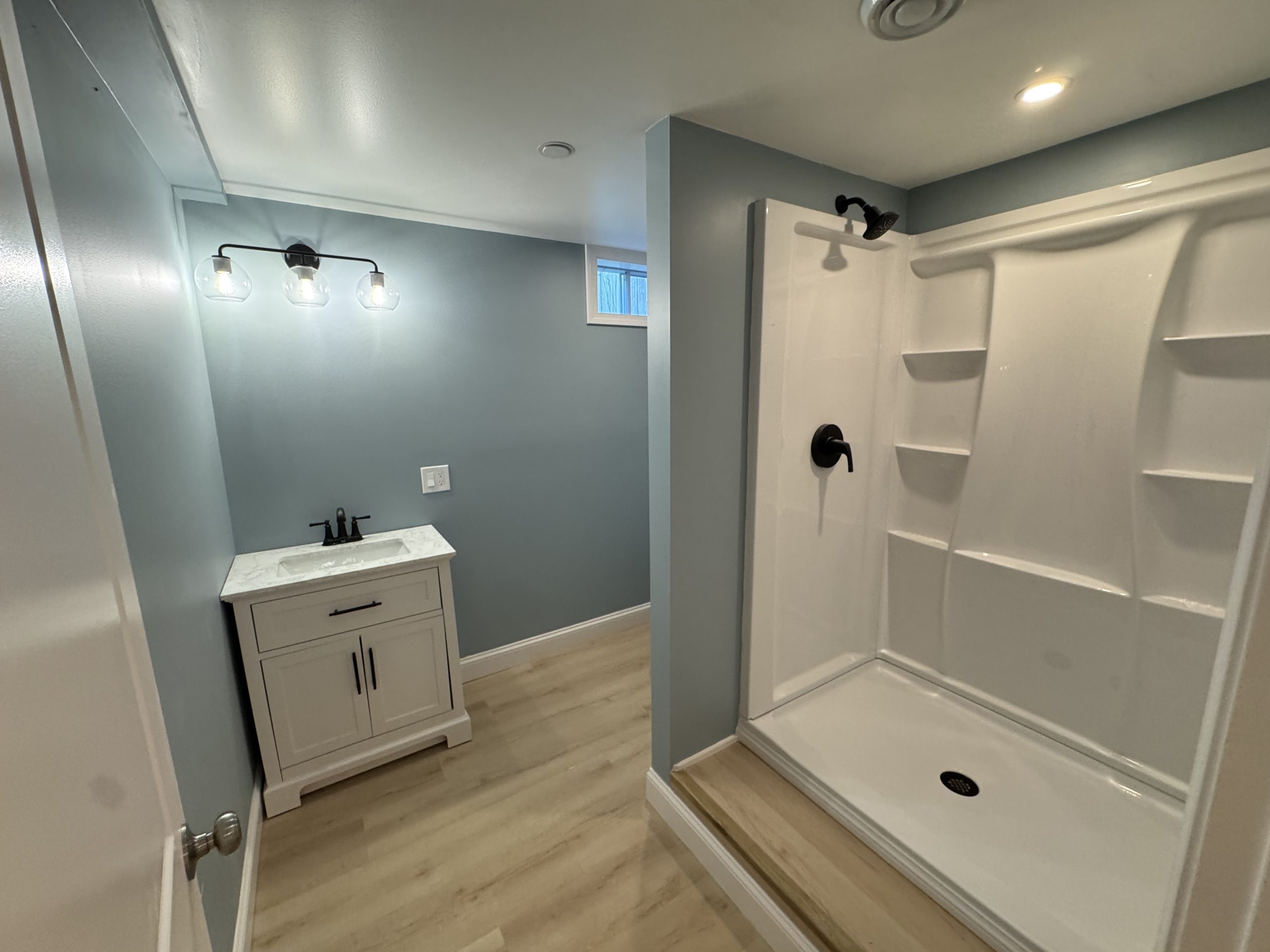 This stunning basement transformation in Portland, Maine redefines modern comfort and functionality. With a total investment of $76,000, the project introduced a sprinkler system, air exchange system, full bathroom, and a dedicated utility room — turning an unfinished basement into a safe, energy-efficient, and highly livable extension of the home.