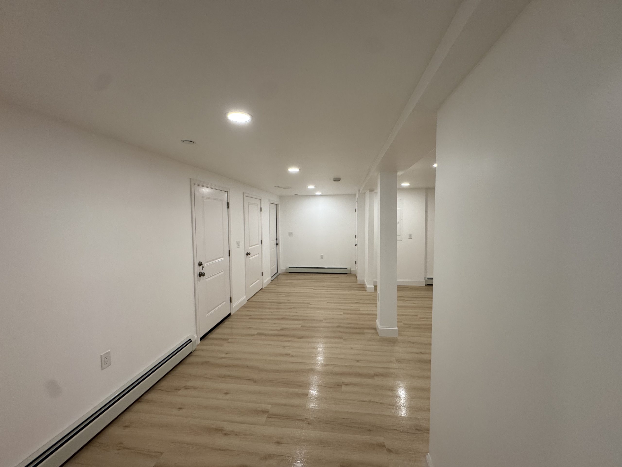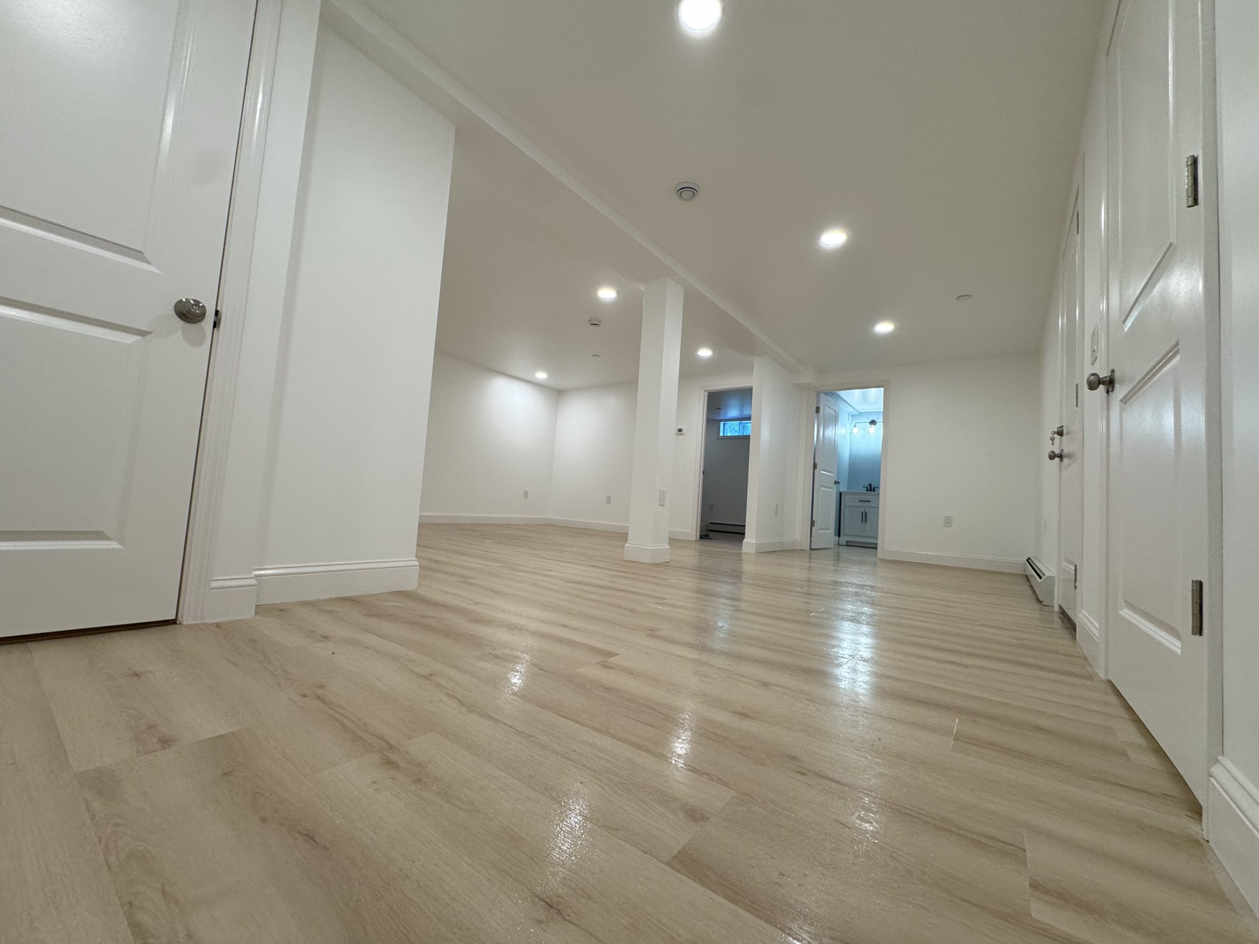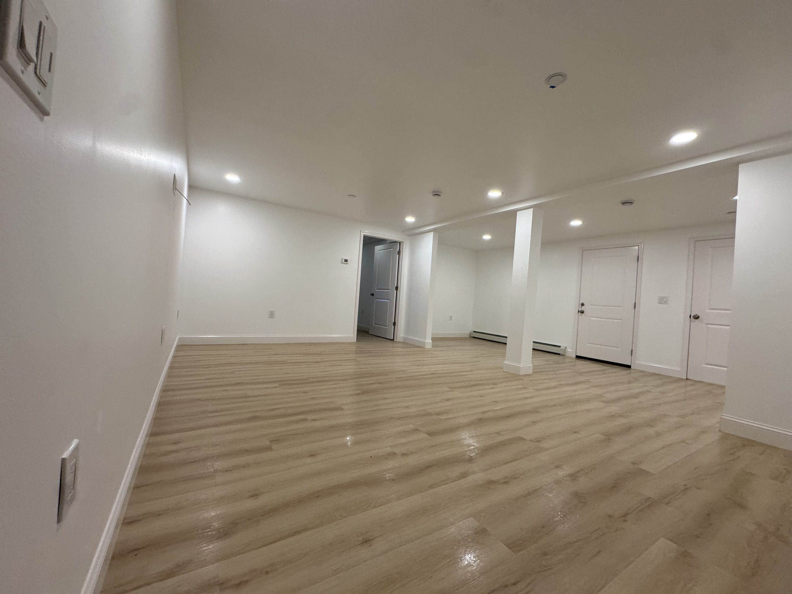 This stunning basement transformation in Portland, Maine redefines modern comfort and functionality. With a total investment of $76,000, the project introduced a sprinkler system, air exchange system, full bathroom, and a dedicated utility room — turning an unfinished basement into a safe, energy-efficient, and highly livable extension of the home.