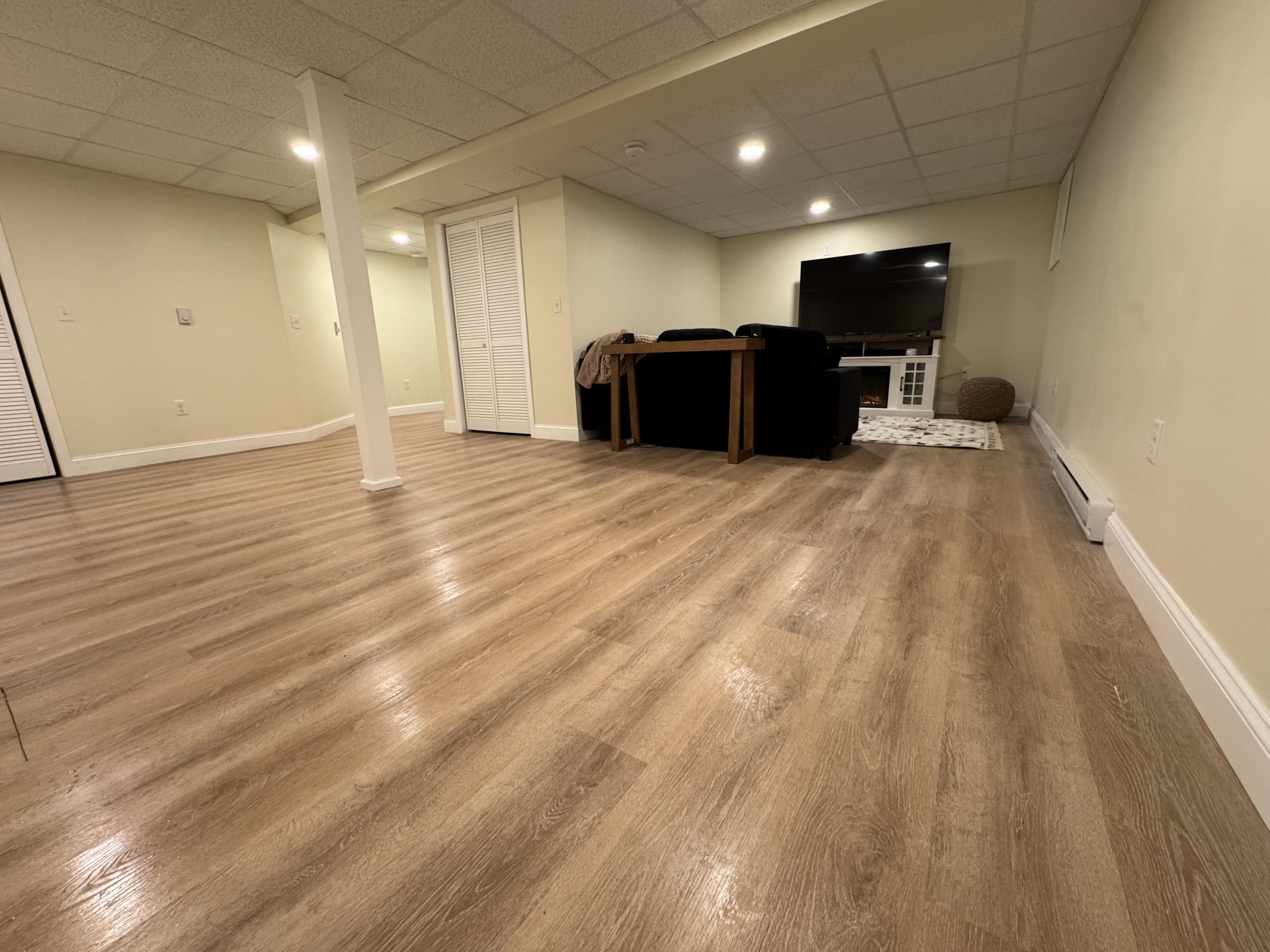 Modern Basement Transformation in Scarborough, ME: A $30,500 Renovation for Work, Wellness, and Entertainment