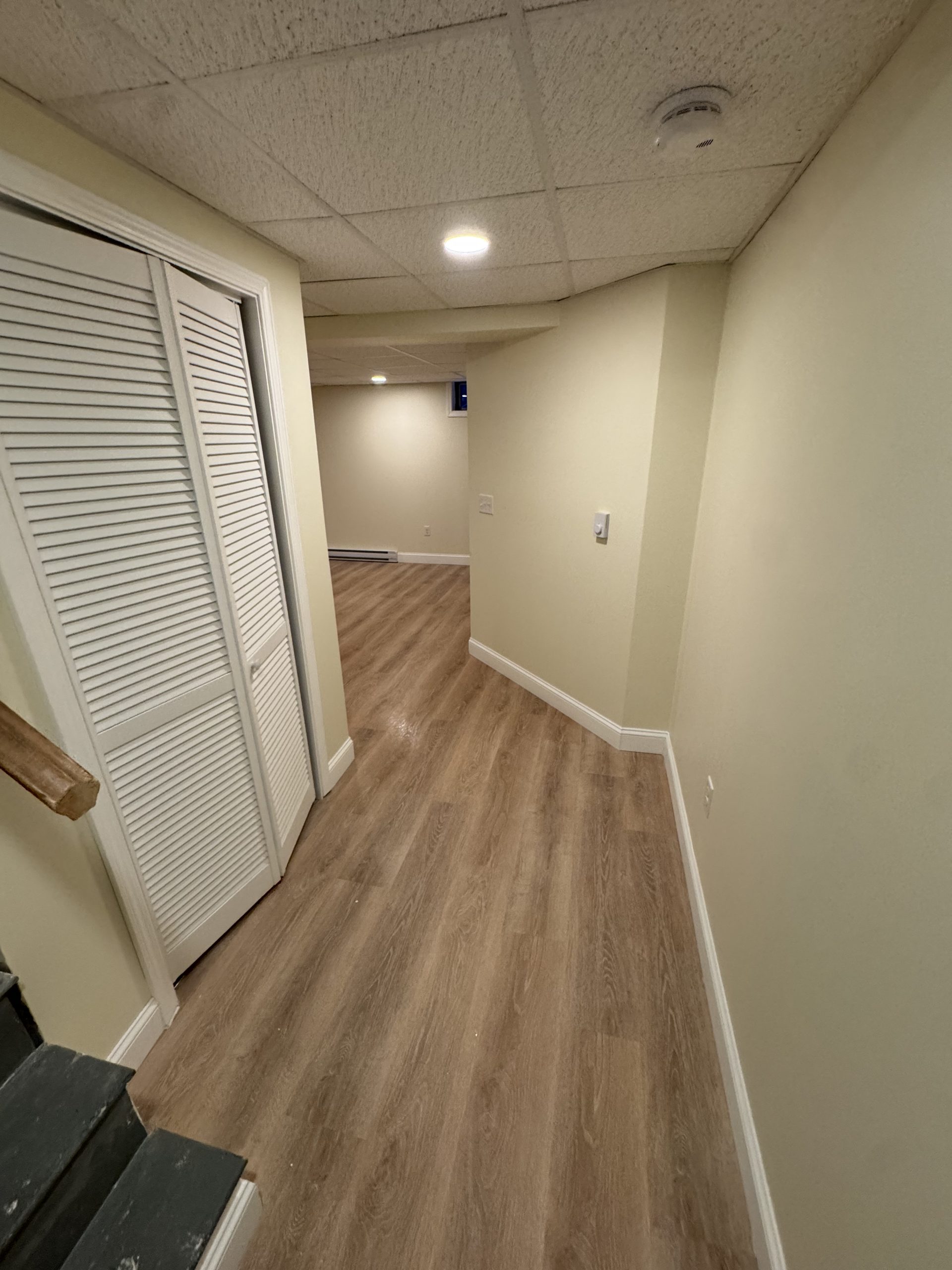 Maine’s winters can be long and cold, so electric baseboard heating was installed to ensure consistent warmth throughout the basement. This system allows for zoned temperature control, improving comfort and energy efficiency — a must-have for year-round usability.