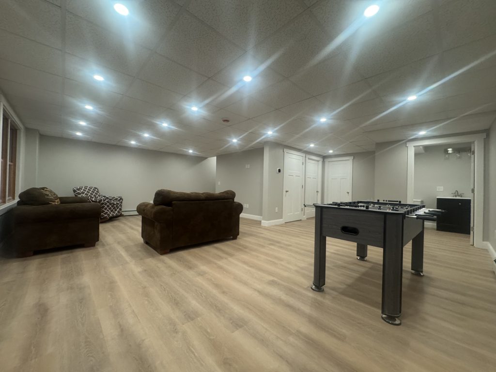 Modern Basement Transformation in Scarborough, ME: A $30,500 Renovation for Work, Wellness, and Entertainment