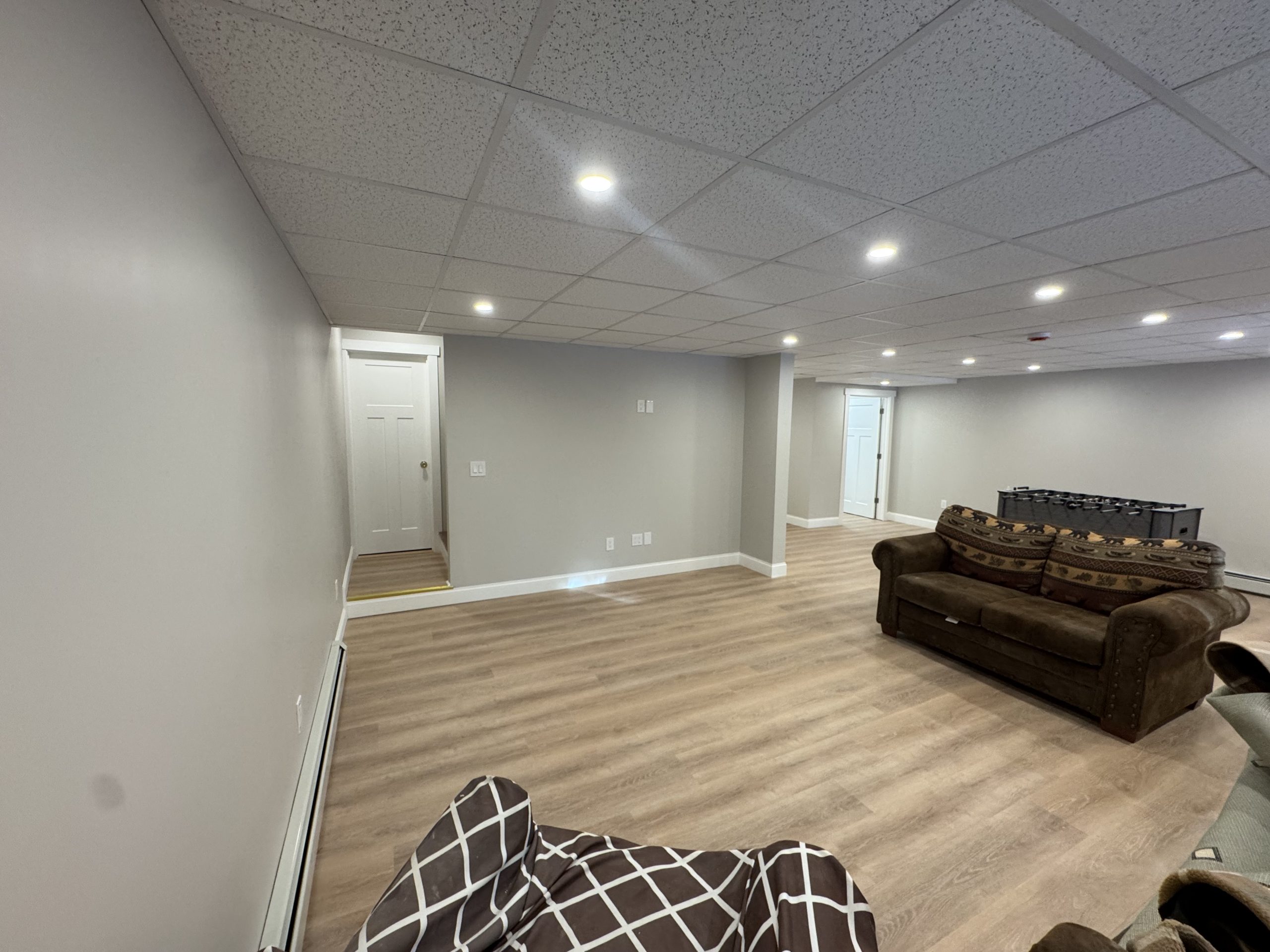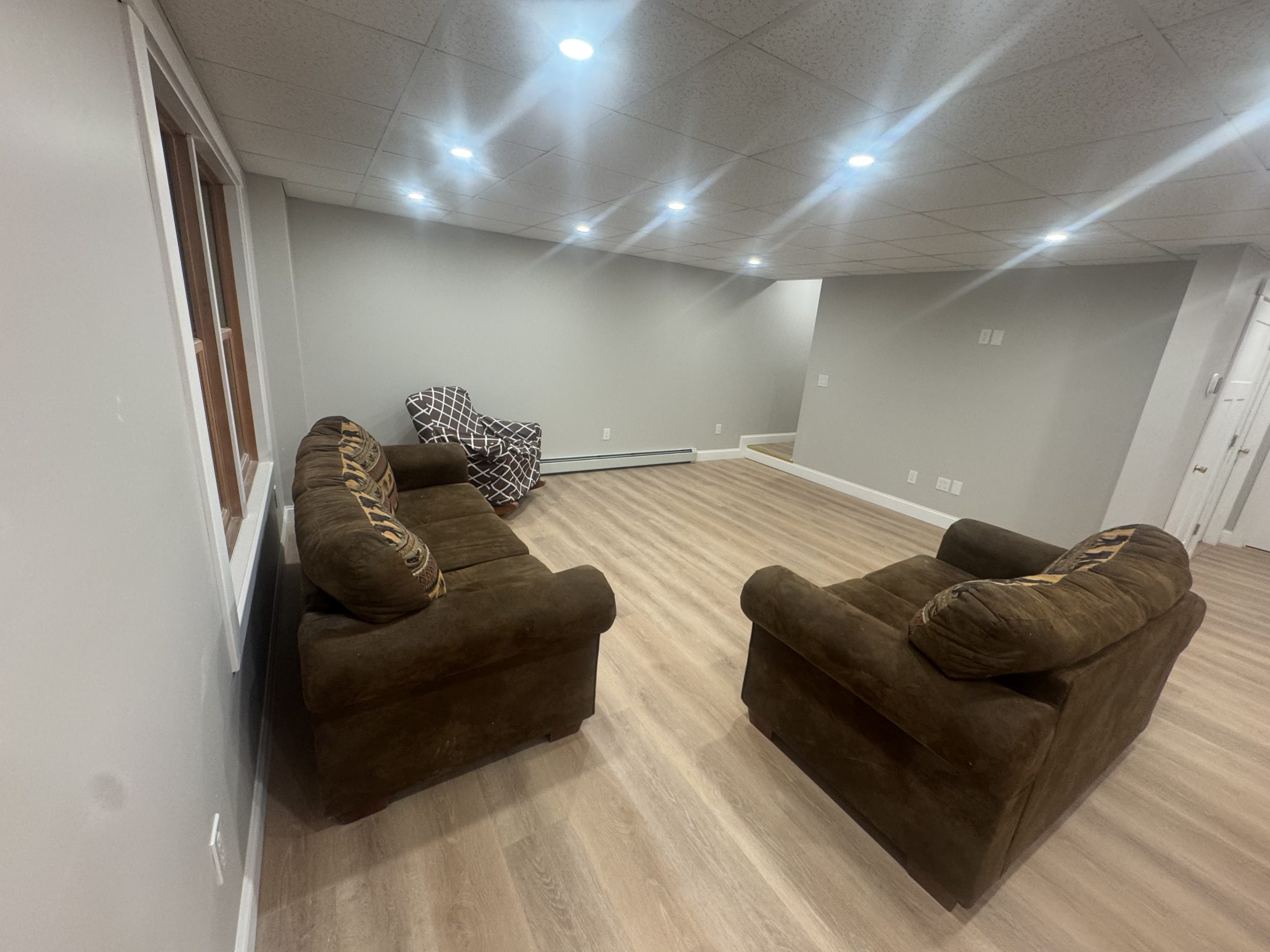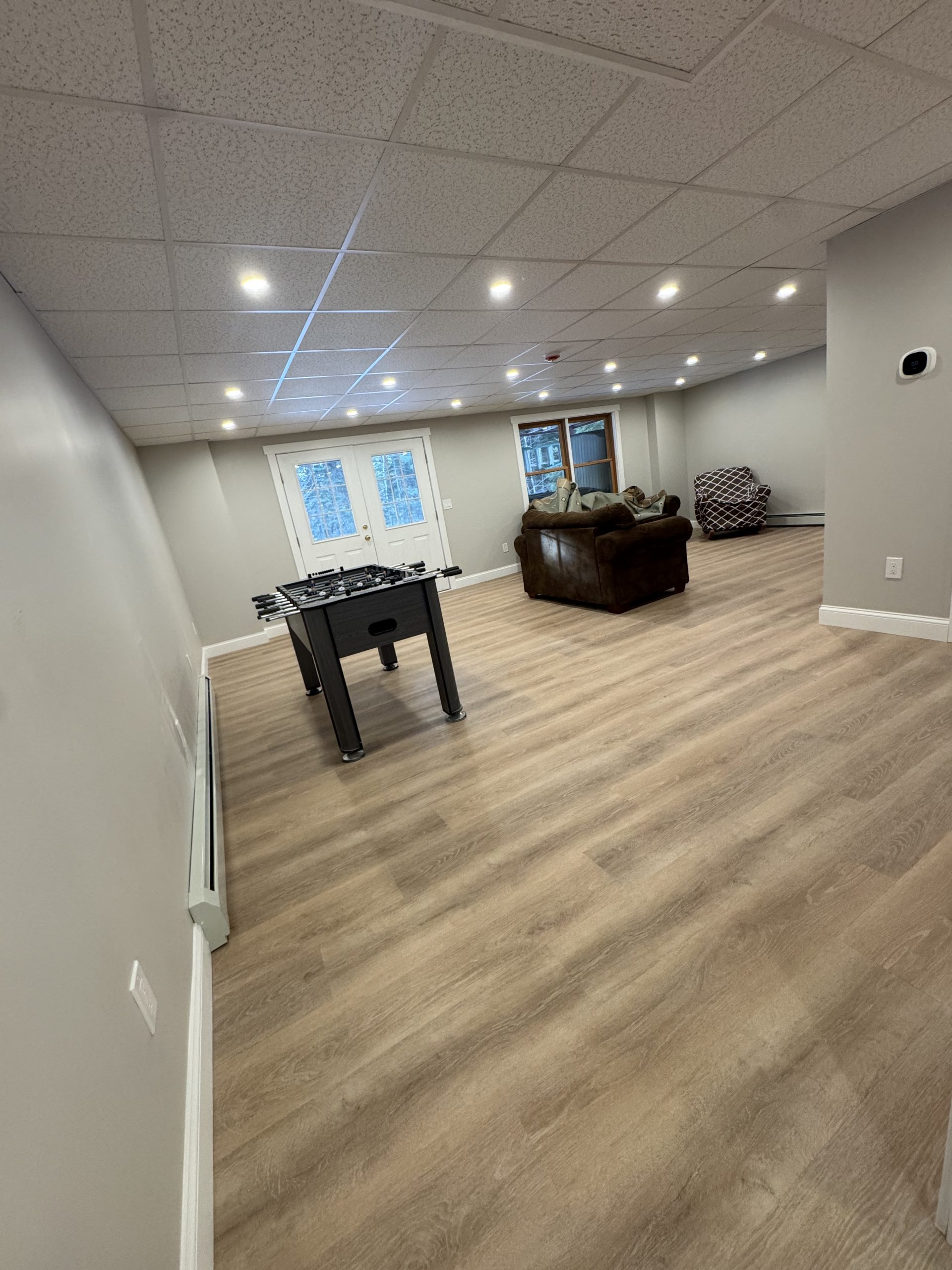 Modern Basement Transformation in Scarborough, ME: A $30,500 Renovation for Work, Wellness, and Entertainment